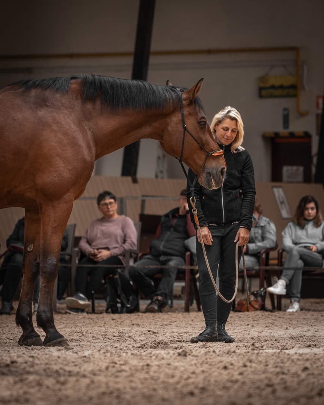 Je suis titulaire du Dejeps activité équitation et responsable au niveau nationale de la formation en équitation éthologique des professionnels, formée au niveau expert en science du comportement animal mais également en préparation mentale, en RH, en cnv , en méditation, en développement personnel .Ma formation la plus impactante à toujours été celle du retour de mes chevaux.